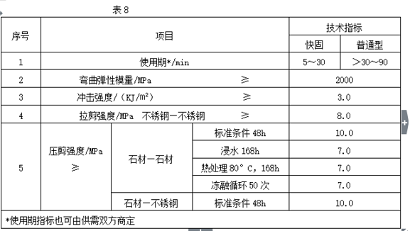 4)干挂石材使用的密封胶在批量供货时应抽样复验,各项性能应达到规定要求。